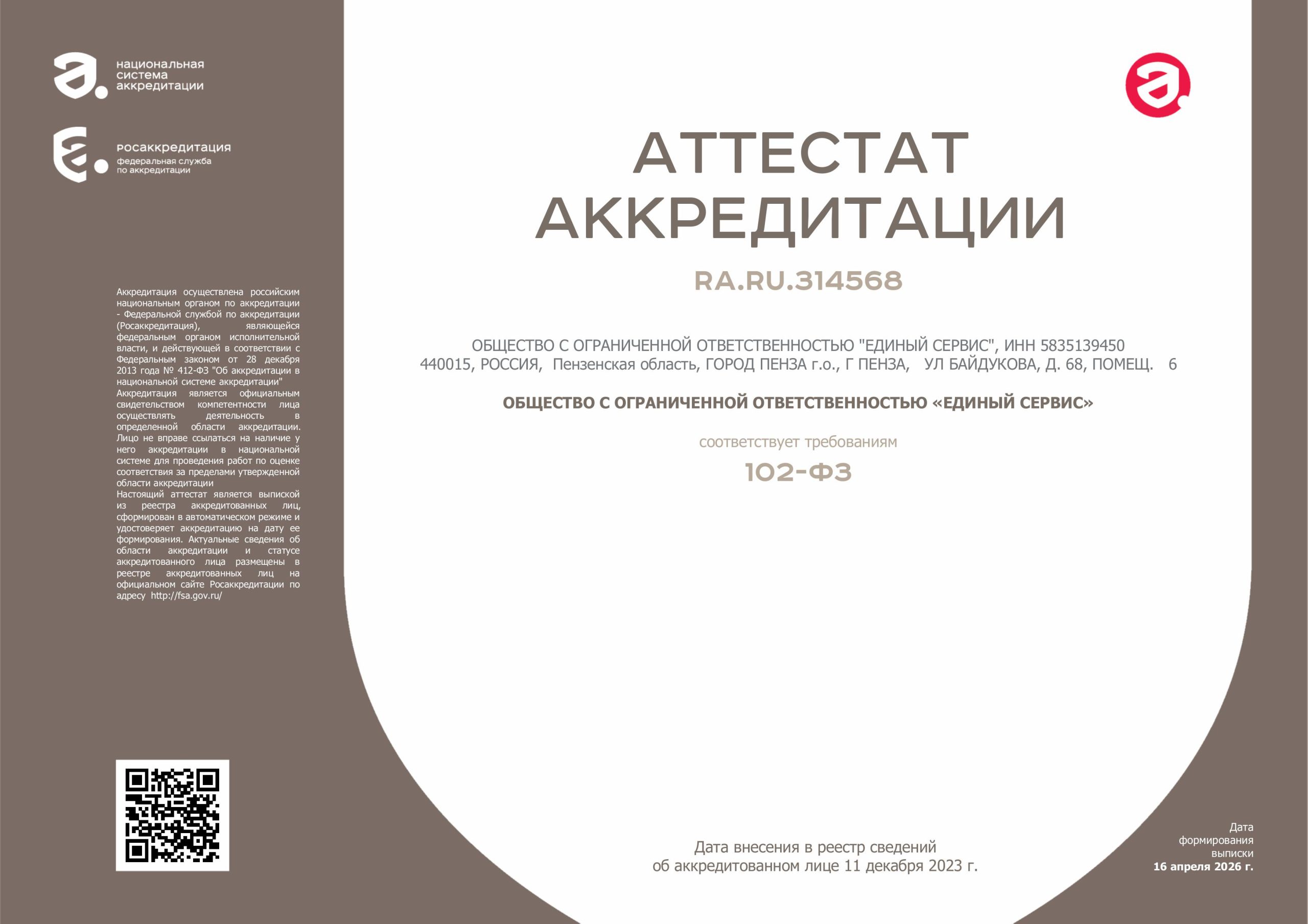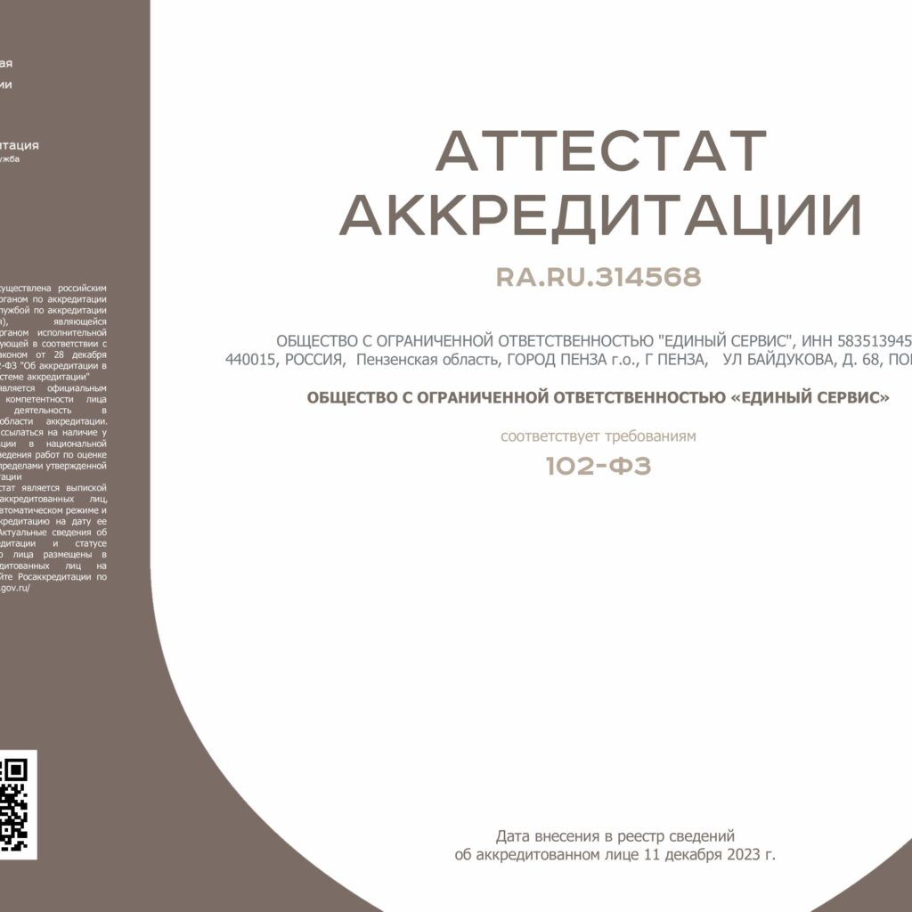 Аттестат аккредитации RA.RU.314568 от 11.12.2023